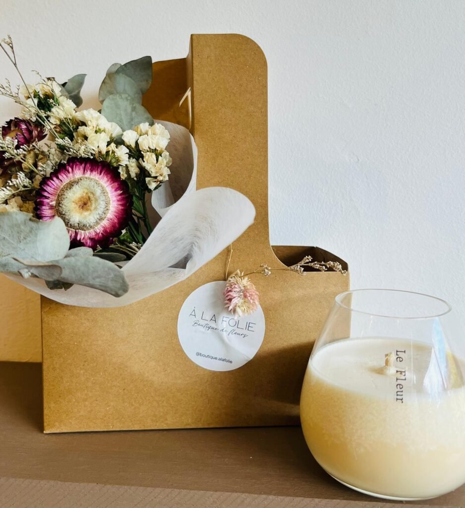 Cajita con flores preservadas + Vela Bombé Baja